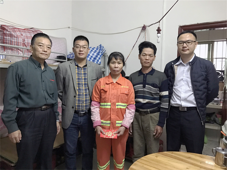 3月8日上午,龙马环卫公司总经理罗福海、工会主席符气南、人事部长张初德等冒雨走访慰问了奋战在一线工作中和有生活有困难的环卫工人们,为她们带去了节日的良好祝愿及慰问金,表达公司对环卫女工的关心关爱,感谢环卫工人的辛勤工作,为城市的优美环境做出的贡献。