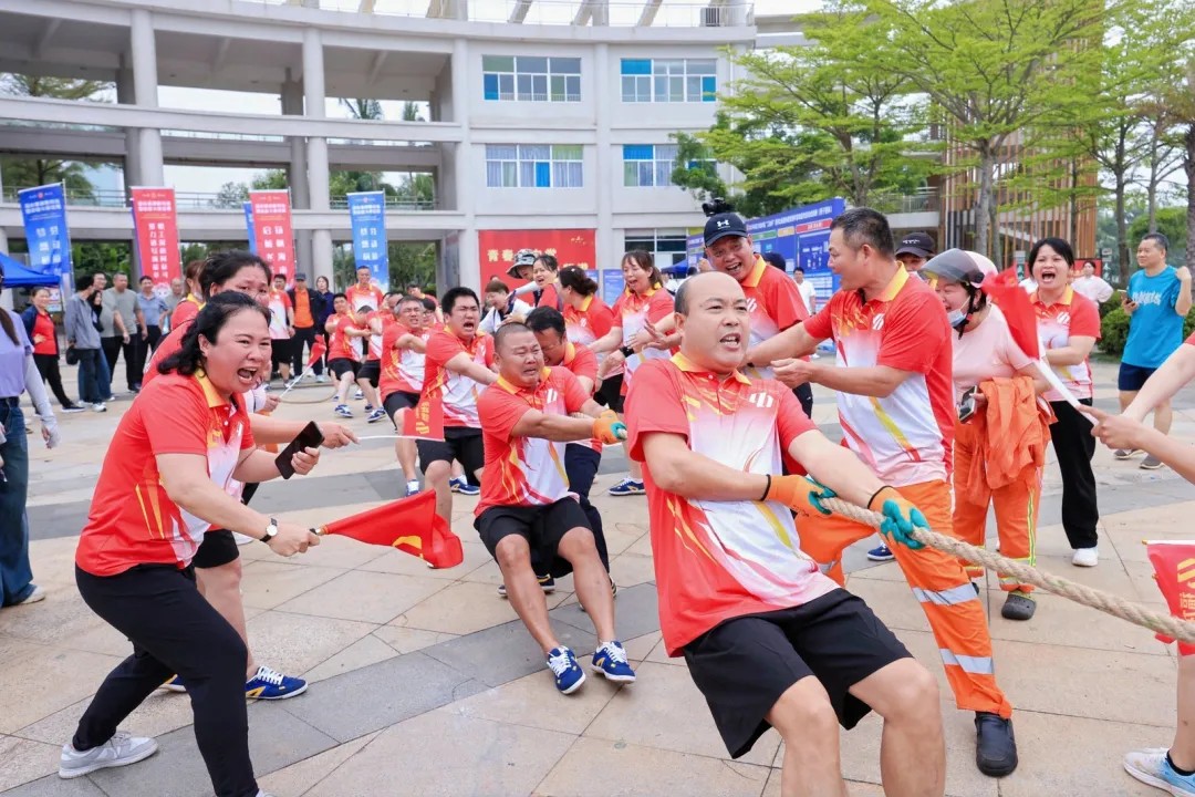 活动现场热火朝天,男子组与女子组比赛依次开场。龙华区 32 支男队、30 支女队蓄势待发。裁判哨声一响,赛场瞬间沸腾。福龙马海口公司队员们迅速投入拔河比赛。队首队员双手紧握绳索,肌肉紧绷,全力发力,目光坚定充满信念。队尾 “压阵” 队员双脚稳扎地面,有的紧闭双眼、凝神聚力,额头青筋根根暴起;有的则咬牙切齿、高声嘶吼,双手拼命后拉。双方力量激烈交锋,绳索在中线来回摆动,每次移动都揪着观众的心。激烈对峙、精彩拉锯,比赛很快进入白热化,现场氛围紧张到了极点 。