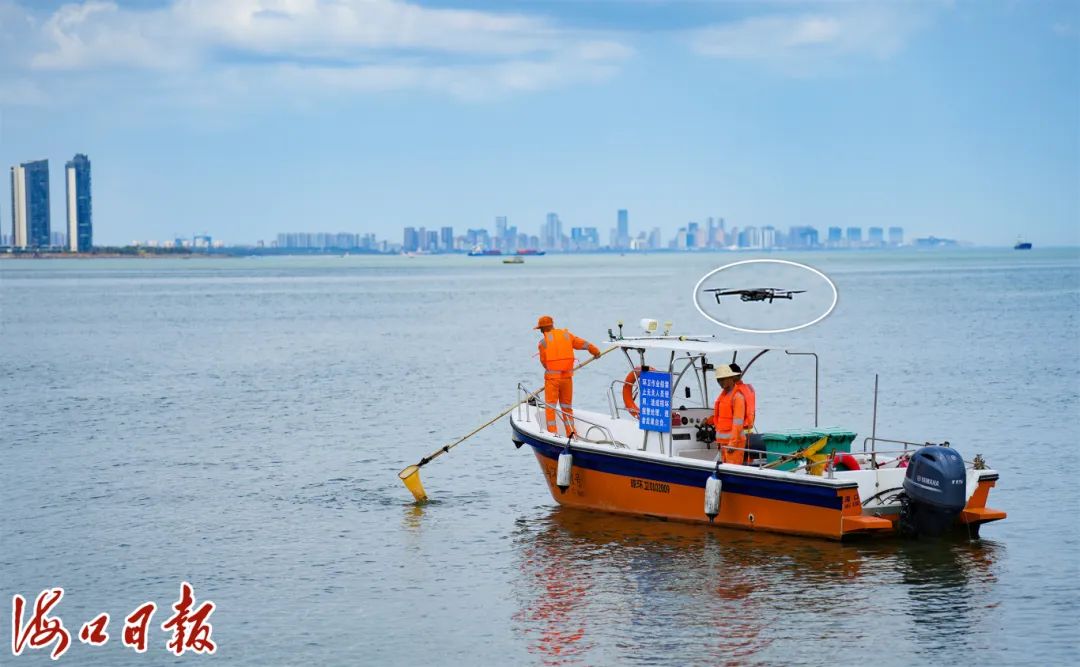 白云悠悠,一架无人机在龙珠湾水域上空翱翔。“左方600米处有漂浮物,请去打捞。”福龙马海口公司无人机操作员陈德森正在操作无人机进行巡查。突然,显示屏上出现了一个红色的标记,他迅速通知了附近的打捞船,几分钟后,漂浮物就被成功打捞上岸。